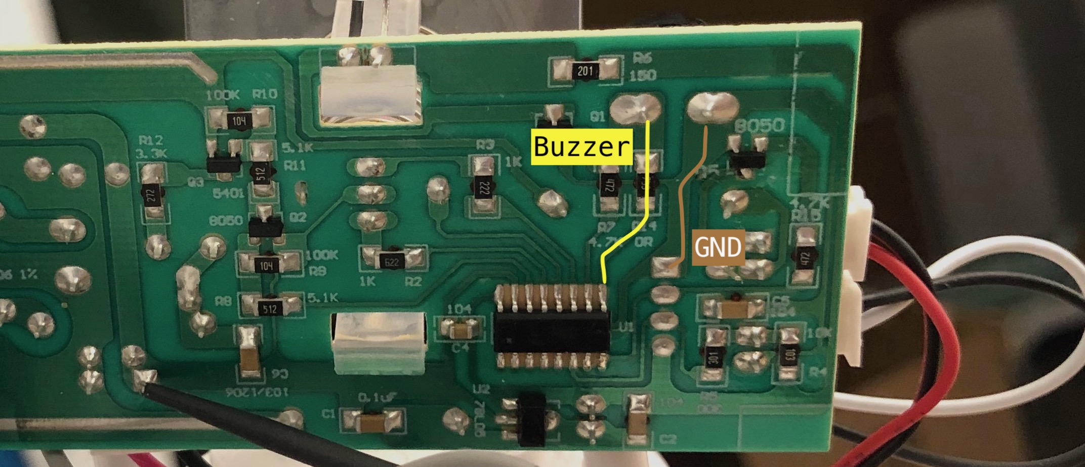 Next is the buzzer. The buzzer is actually directly driven by the MCU, so it’s not hard to locate the pin.